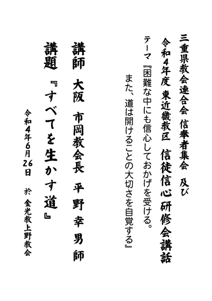 2022年 東近畿教区信徒信心研修会 平野幸男先生教話
