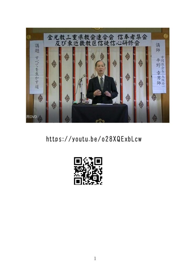 大阪 市岡教会長 平野幸男先生 『すべてを生かす道』